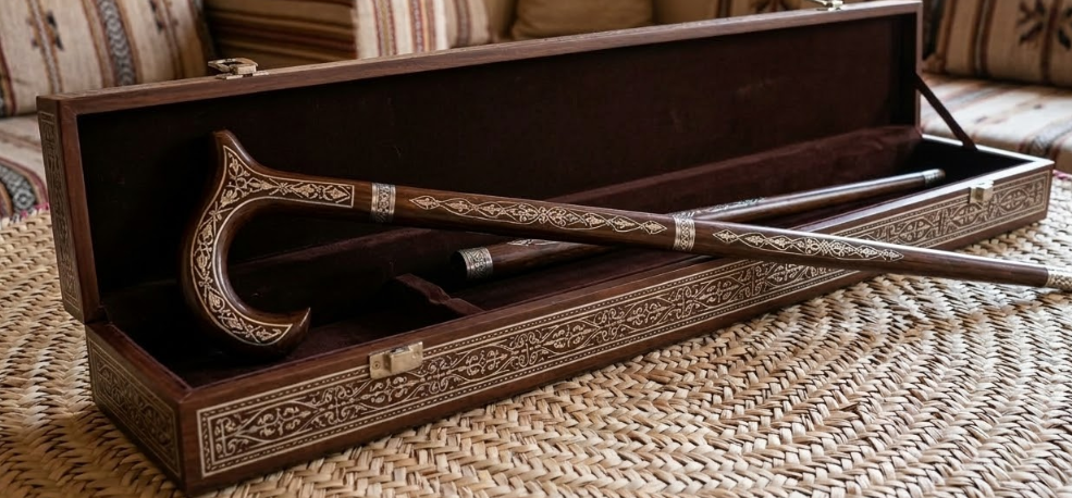 The Traditional Omani Stick (Assa) is a cultural accessory that symbolizes strength, respect, and tradition in Oman. Historically carried by Omani men during ceremonies and cultural performances, the stick remains an important part of traditional Omani attire and heritage.